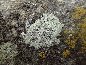 Most of the monthly Friends of Earlham Cemetery walks are led by a member of the group, but for this one Peter Lambley, the county lichen recorder, had agreed to take us round. Despite the drizzly weather there was a good turnout, and we managed to record about 25 lichens in total. Many of them were fairly common species associate with gravestones or trees, but I did see three new species, Candelariella medians, Lecanora polytropa and Lecanora soralifera.